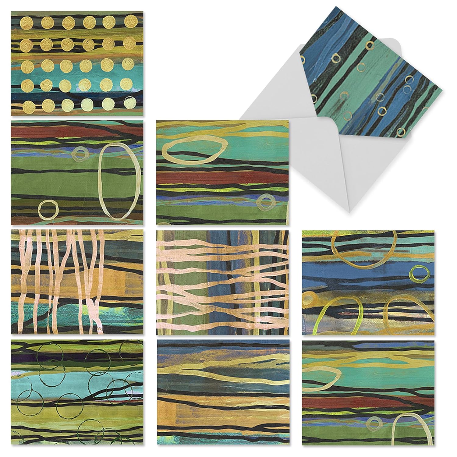 Each set of ten includes ten unique designs based on a theme. (In some sets all designs face the same direction; in other sets some are vertical and some are horizontal.) Many sets — like the one shown above — are abstract, which is nice, because it means you don’t have to worry much about whether they’re appropriate for certain occasions over others.