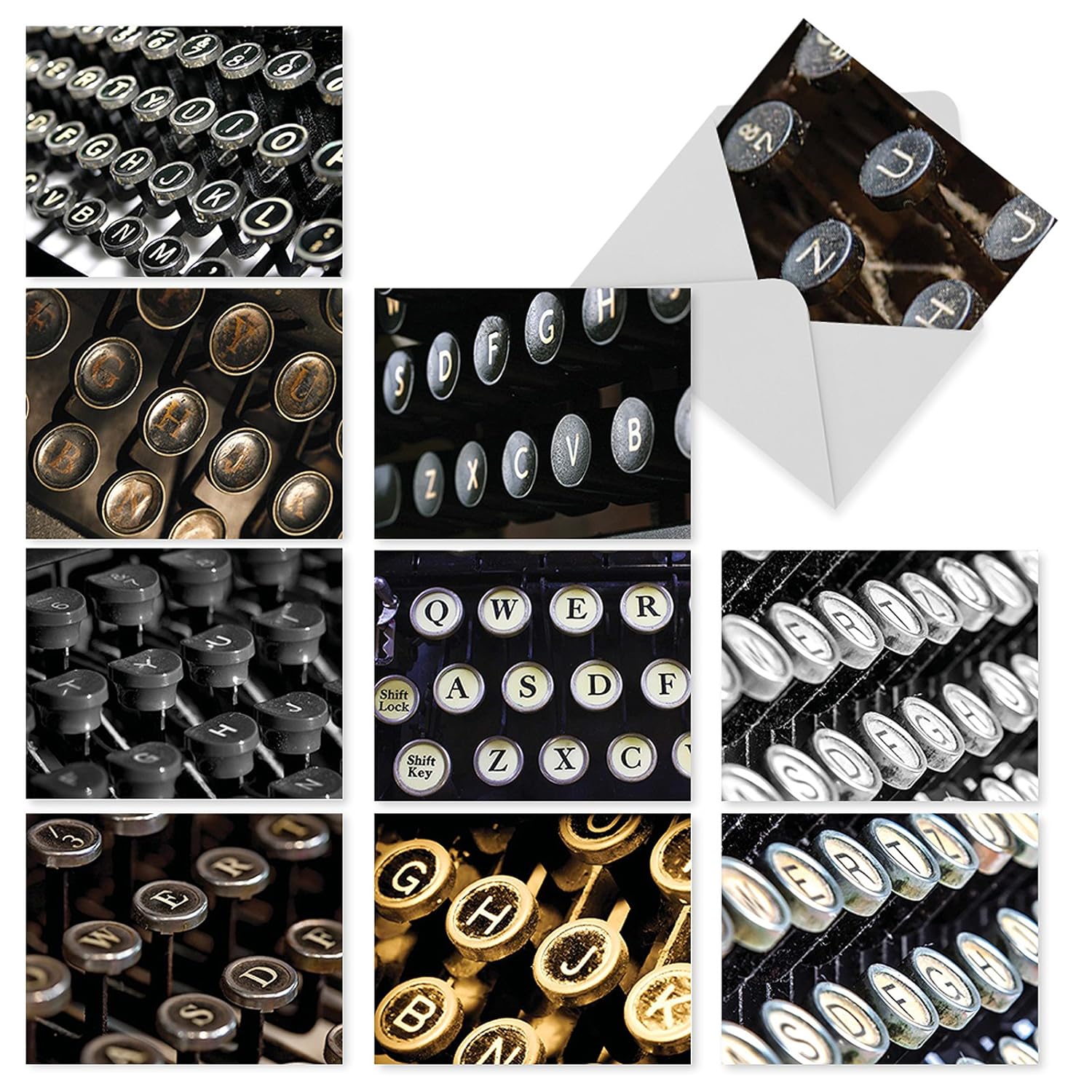 One of the things I love about these cards is that they’re not all girly! Many times, card companies have a lot of floral or lacy patterns. Those are nice enough, but a) they aren’t really my style, and b) it never feels right sending those to the guys! (Seriously. There’s something very weird about sending a flower-covered card to my brother-in-law.) I love peacock copper, so the set below is one of my absolute favorites, but there are easily half a dozen or more sets that I would snap up right offhand: these two sets, of course, as well as trees, vintage typewriters, leaves, peacock feathers, etc. Click here to browse the options.