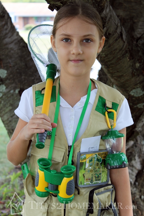 The kids love these! They immediately went to try to track down the plastic safari hat we already have, to try to round out the outfit. (Some dollar store dealie, I think. The hat, I mean.) They’ve been running in almost every day, “I need the bug box!” (or some such).