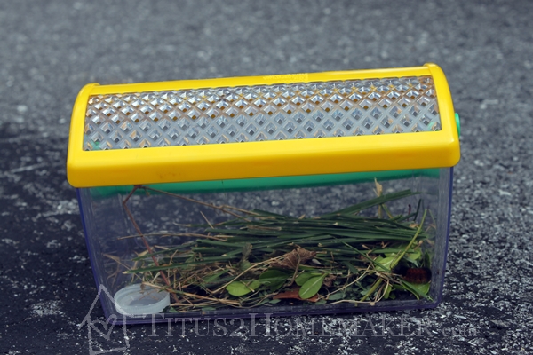 Like many of the other products, it’s made entirely of plastic. This makes it sturdier than those made of mesh. And clear, unlike wooden boxes. And watertight (at the bottom; the lid doesn’t have a watertight seal). So you can keep bugs in here, but you could just as easily keep a frog, or a fish, or a crawdad. Right now, Ariel is keeping a caterpillar she dubbed “Cookie.”