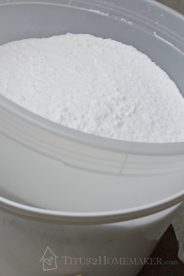 I’ve been making this detergent since Ariel was a baby. It works great for everything, including cloth diapers. (I use the “double dose” for cloth diapers, the single for pretty much everything else.) Here I’ve cut the recipe in half for simplicity’s sake, because a half-batch fits in a gallon ice cream bucket (as shown). That’s how I prefer to store it.