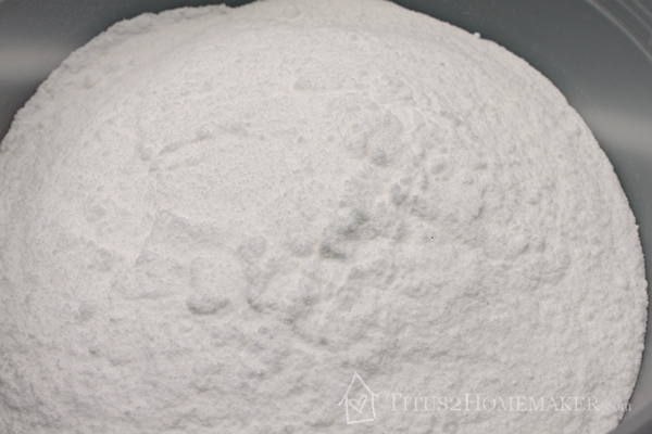 Because many detergent recipes call for washing soda, some of you are probably wondering if this recipe is written correctly or if it’s a typo. It really is baking soda. Which is nice because baking soda is consistently easy to find and washing soda is kind of hit-or-miss.