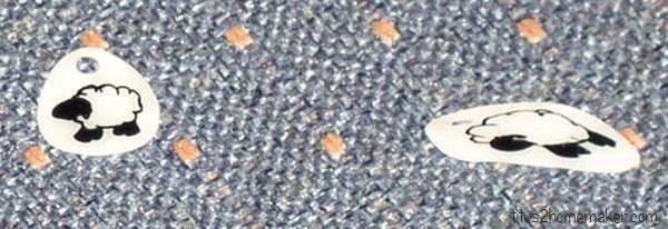 Cut out your pieces, however you like. As you can see, I had some that I cut out along their outlines (like the letters) and some which I just cut out near the edges (like the sheep). Cutting the interior (like the holes in the A and R above) requires a craft knife like an X-acto knife, and is tricky on the plastic; be careful!