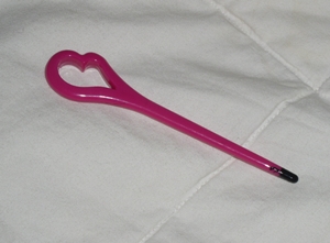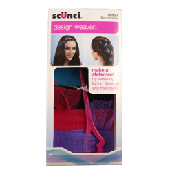 My daughters have sometimes admired hairdos that include ribbons and things woven through them. I always thought these were well out of my reach. The Design Weaver makes these (some of them, anyway) doable. (Well, the woven ribbon part. I still have to be able to do the underlying hairstyle.) The primary tool looks like a giant sewing needle.
