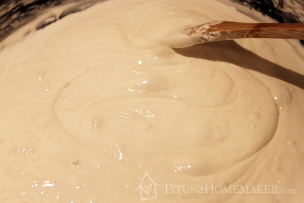 Then I continued to stir while cooking over low heat, until it was thick like dough. There might be some chemical reaction that takes place here, but I think it’s mostly just evaporating the water out of the mixture.