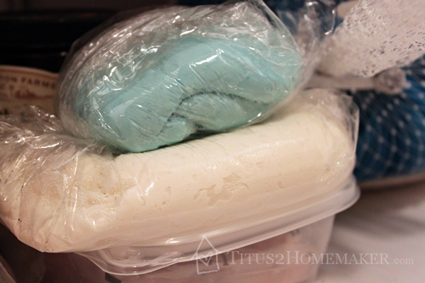 Then I wrapped each lump up in plastic wrap and popped it in the fridge. I think this step is only necessary if you’re not planning to use it right away, or maybe if your “clay” is not fully cooled. I think I could have used this right away, but it was late at night and I needed to wait, anyway.