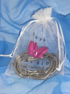 This is another of those companies that I was blessed to find in the course of my gift guide compilation. Lone Orchid has raw silk handbags, but their “signature” product is the necklace you see pictured at left.
