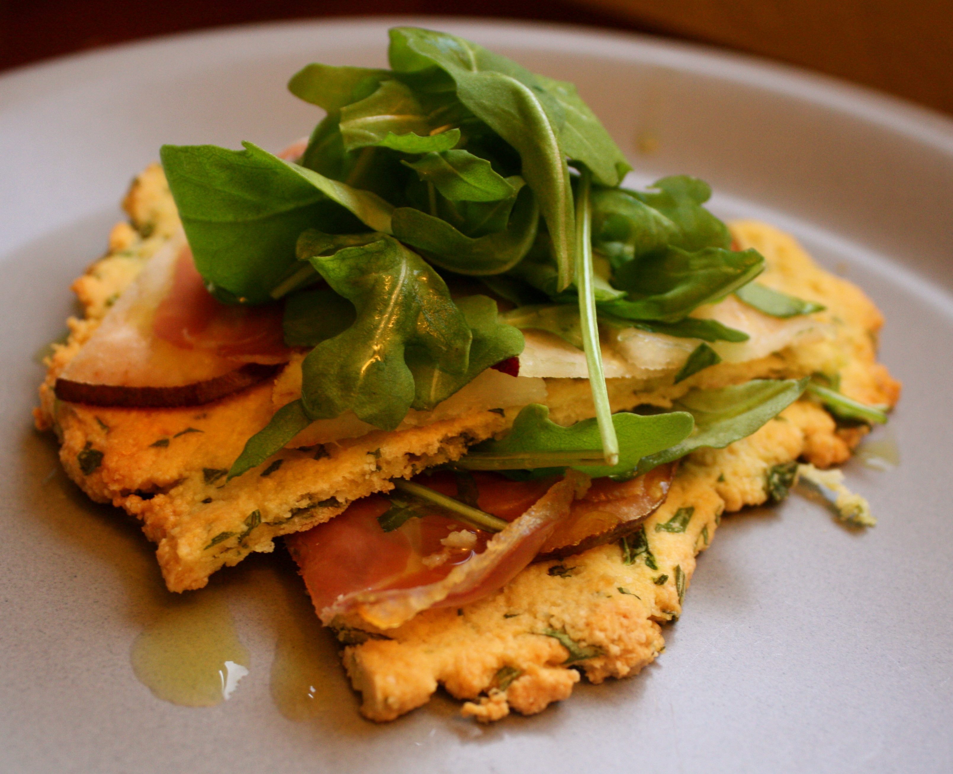 - Combine the first 4 ingredients in a large bowl and mix until combined. Pat into a ball and then press out onto a greased baking sheet, to about ¼” thick. Bake for 10-12 minutes until just browning and remove from oven to cool.
