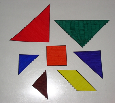Some learning activities/manipulatives can be pretty easy to make. I got the idea for these tangrams from CraftProjectIdeas.com. I must admit I altered it a bit, though.