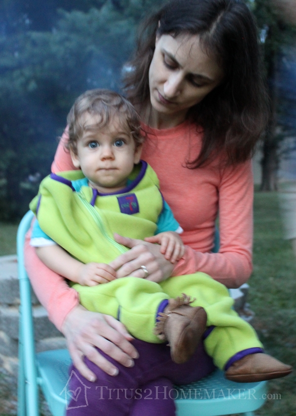 He looked so cozy in that at our party – I was wishing I had one, too! These look like they’d be great for taking the boys out to see the sunrise over the ocean when we’re on vacation in September/October. The weather warms up during the day, but the mornings are still chilly. We could put these on them while they’re strapped into our Ergos, or riding in baby seats on the backs of our bikes.