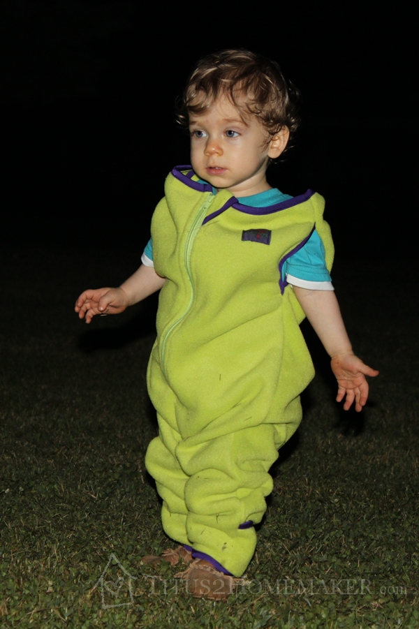 (I’m guessing the little babies are more likely to want their feet covered, while the toddlers prefer to have their feet out. Although I appreciate that they’re all made the same because my little guy is…well, little. That’s a 12-18 month size he’s wearing, if I recall correctly, and you can see it’s pretty big on him.)