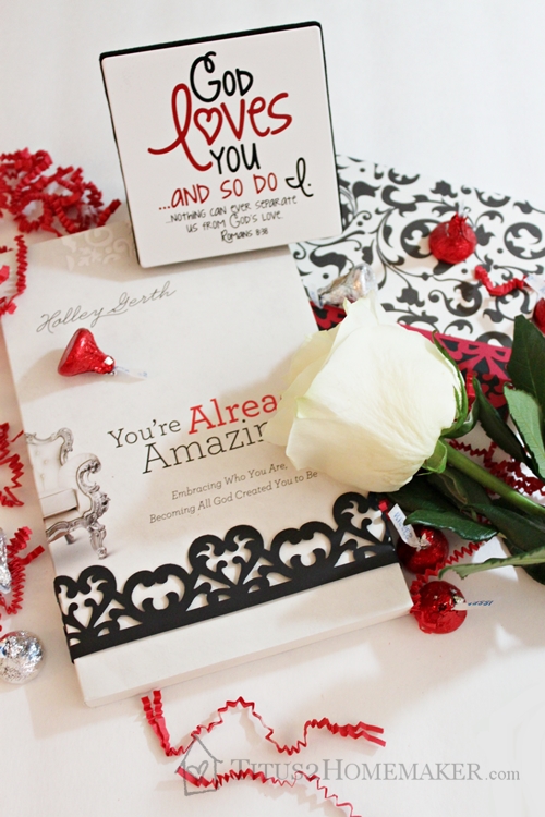 So I had already been mulling over the idea of blessing a single friend with something along these lines when the folks at Family Christian Stores asked for some “not-just-the-usual” gift basket ideas for Valentine’s Day. Of course I was eager to jump on board!