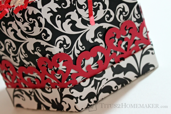 The most complicated thing I did was glue more red cardstock to the inside, because the reverse of the black-and-white print paper was a green-on-green print that didn’t go with everything else.