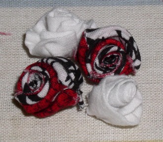I was learning on these, so a couple of them didn’t really come out like I’d hoped. The white roses are made entirely of selvedge pieces!